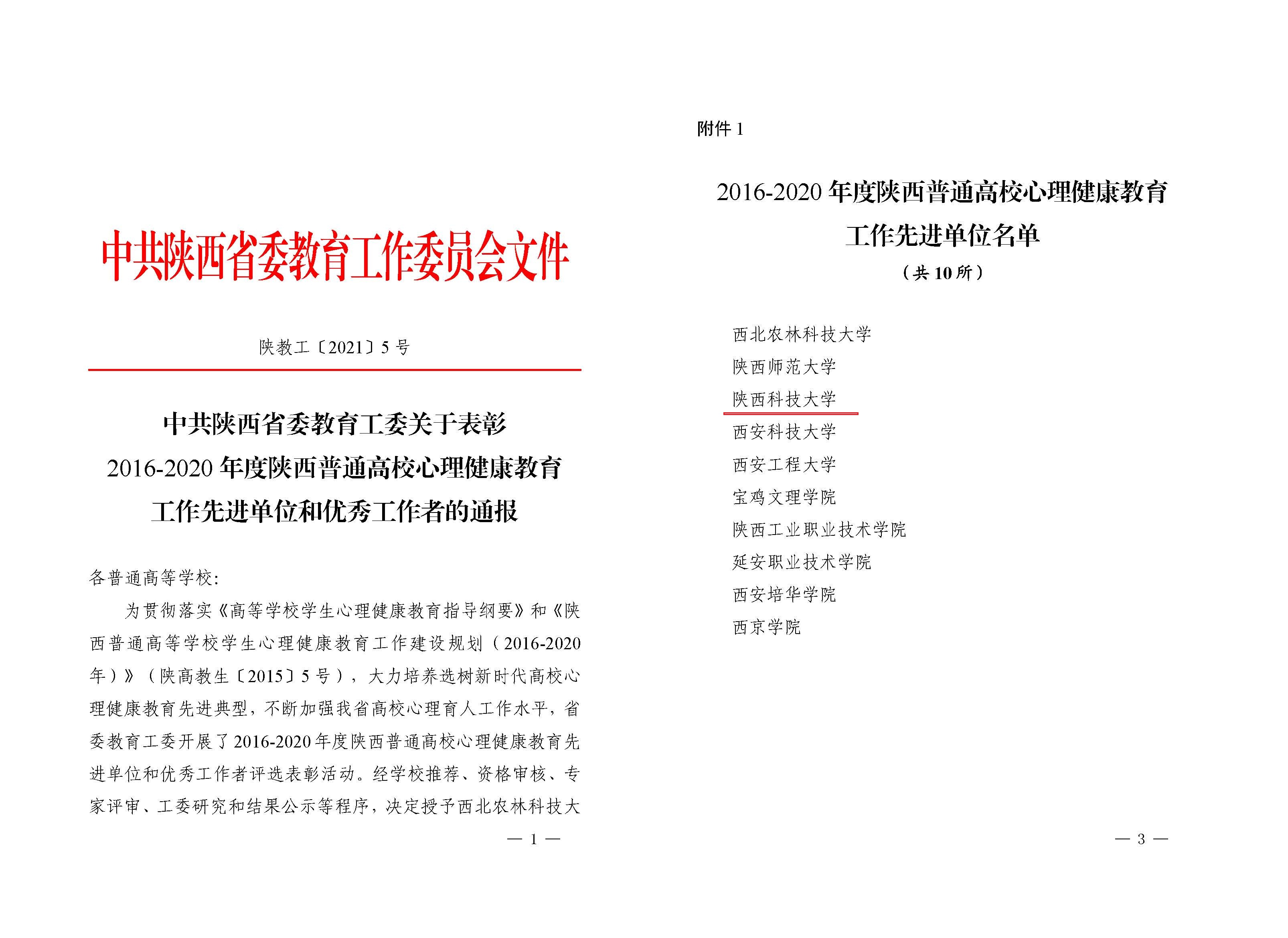 日前,陕西省委教育工委发文,对2016-2020年度陕西普通高校心理健康教育先进单位和优秀工作者进行通报表彰。万象城官网等10所高校被授予“2016-2020年度陕西普通高校心理健康教育工作先进单位”荣誉称号,王慧芳等60位教师被评为“2016-2020年度陕西普通高校心理健康教育优秀工作者”。