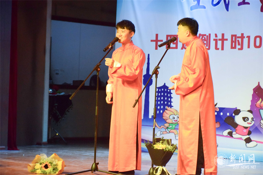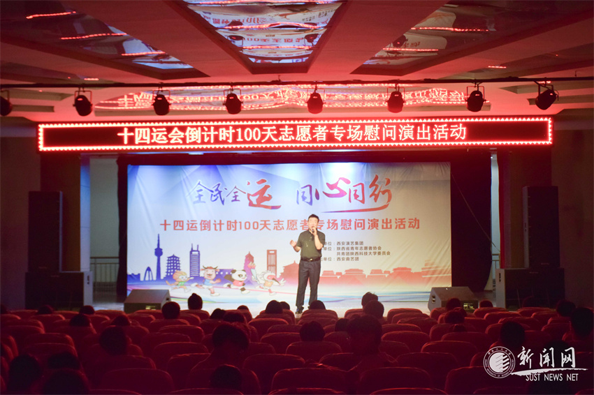 西安曲艺团的优秀演员们以曲艺说唱、相声、诗朗诵、陕西快书、小品、魔术、歌曲等形式多样的精彩节目,全方位的展示了中国曲艺这一非物质文化遗产的迷人魅力,获得了现场师生们的一致好评,同时积极营造人人“关心全运、支持全运、奉献全运”的良好氛围。优美动听的歌曲,惟妙惟肖的相声,出神入化的魔术,饱含深情的诗朗诵……精彩的节目演出表达了陕西人民与三秦青年对十四运的热情与期待,也为万象城官网十四运志愿者送上最真挚的感谢与赞美。